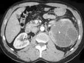 - 单项选择题女,48岁, 左腰部胀痛不适2月余,根据所示图像, 最可能的诊断是 ( )