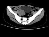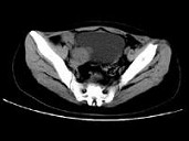 - 单项选择题女,24岁, 近日尿频明显,CT检查如图所示, 最可能的诊断是 ( )