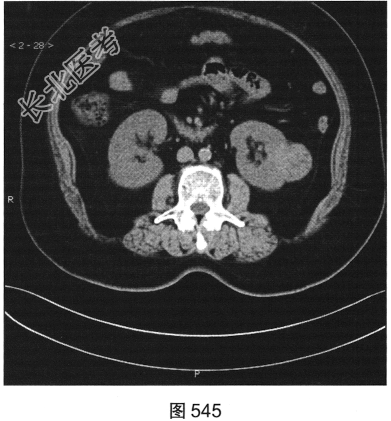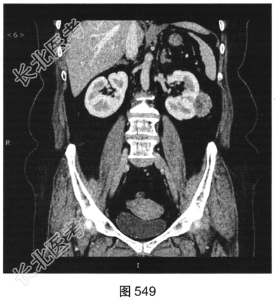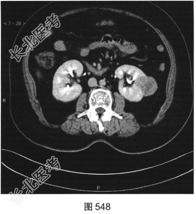 - 多项选择题3.[提示]CT平扫+增强(图545~图549):左肾下极背外侧软组织密度灶, 部分突出于肾实质外,其内可见低密度坏死灶, 增强扫描强化不均匀,平扫、皮质、实质、排泌CT值36HU、92HU、73HU、53HU。可考虑的鉴别诊断为( )