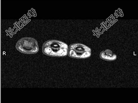 - MRI检查肩袖破裂,哪一种加权像不易显示