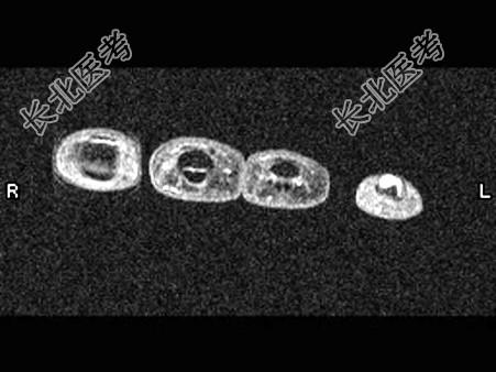 - 男,10岁。胫骨下端干骺端有一直径2mm