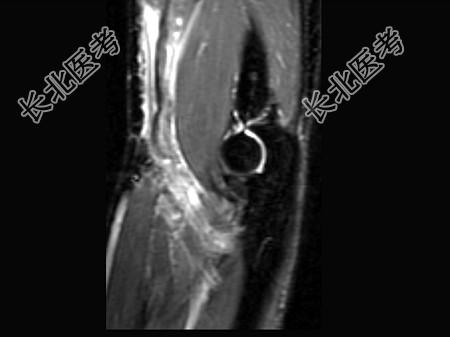 D、肱二头肌腱远侧局部裂伤
