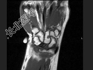- 单项选择题女,41岁, 纺织工,腕部疼痛无力数周, 结合CR和MR,最可能的诊断是 ( )