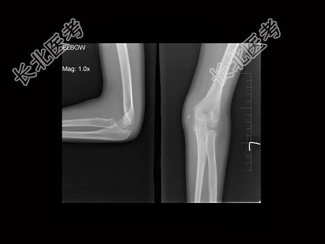 - 男,9岁, 左肘外伤,结合图像, 最可能
