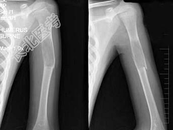 - 单项选择题男,13岁, 因轻微外伤后感左肱骨上部疼痛,软组织肿胀, 摄片见左肱骨上段局限性骨质沿髓腔膨胀性破坏,骨皮质变薄, 部分骨皮质不连续,最可能的诊断是 ( )