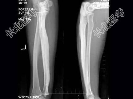 - 单项选择题30岁,女, 因左前臂酸胀不适1年,活动可, 左前臂正侧位片如图所示,最可能诊断是 ( )