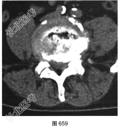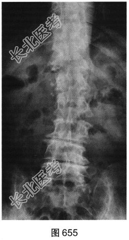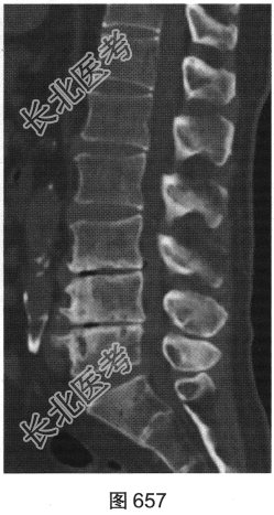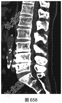 - 多项选择题2.[提示]患者行腰椎X线及CT检查,见图655~图659。患者有哪些阳性影像学表现( )