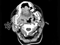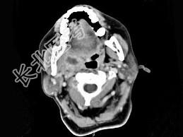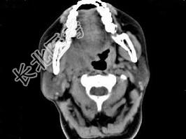 - 单项选择题女,52岁, 咽喉部疼痛半个月,伴低热, CT如图所示,最可能的诊断是 ( )