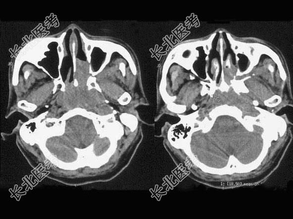 - 单项选择题男,64岁, 间断性流鼻血1年余,近1个月加重, CT如图所示,最可能的诊断是 ( )