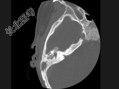 - 单项选择题女,17岁, 右耳乳突区隐痛,右耳后乳突区出现包块, 逐渐增大,CT检查如图, 最可能的诊断是 ( )