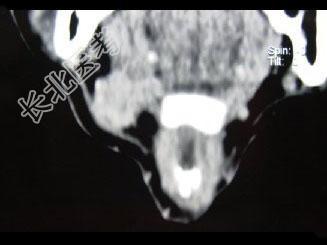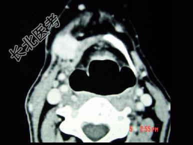 - 单项选择题男,45岁, 右侧颌下扪及一包块约4个月,无痛, PE:包块质硬, 表面欠光整,移动度较差, CT如图所示,最可能的诊断是 ( )
