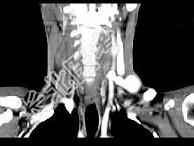- 单项选择题男,46岁, 外伤后左下颈搏动性肿块,CT如图所示, 最可能的诊断是 ( )