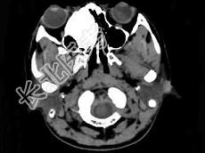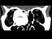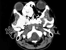 - 多项选择题女,18岁, 眼球轻度突出、眼痛、流泪近半年,CT扫描如图所示, 正确的描述或诊断是 ( )