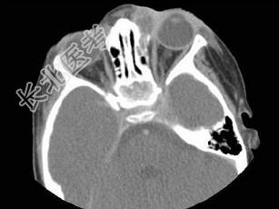 - 多项选择题女,2岁, 左侧眼睑肿胀发热,CT检查如图所示, 正确的描述或诊断是 ( )