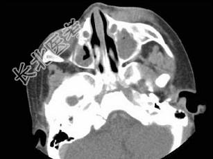 - 老年患者,右侧面部肿胀, 呈青紫色,MR