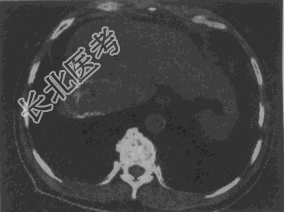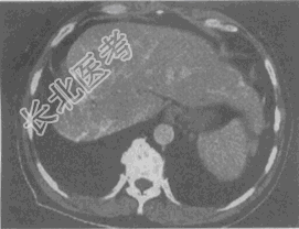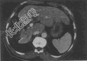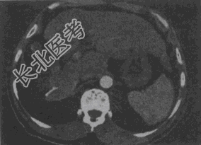 - 单项选择题女,56岁, 腹胀、双下肢水肿、乏力、食欲缺乏,影像所见如下图, 最可能的诊断是