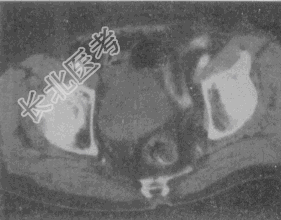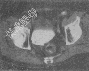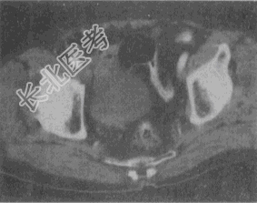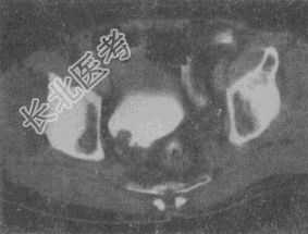 - 单项选择题患者,女, 77岁。血尿20天。CT检查见图。最有可能的诊断是