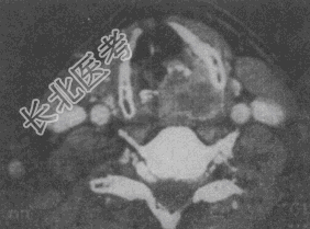 - 单项选择题男性,60岁。声音嘶哑2个月余, 无其他不适。根据给出的CT图像,应拟诊为