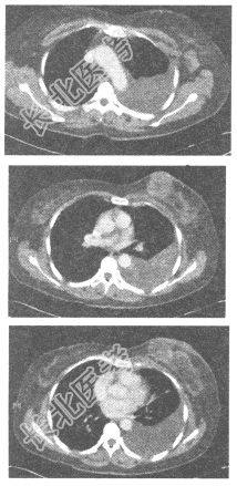 - 单项选择题患者,女性, 56岁,胸部CT发现乳腺占位性病变, 图像如下,以下对该患者乳腺病变较精确的诊断应为
