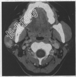 - 单项选择题患者,女, 30岁。无意中发现右侧面部包块半年余。CT检查如下图,诊断为