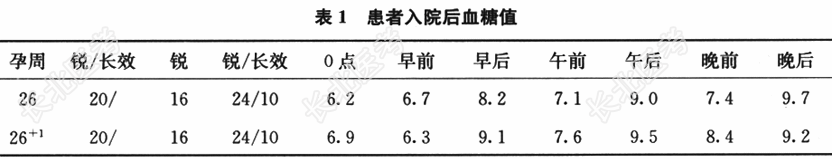 - [材料题] 患者40岁。停经26周,血糖升高3年,控制不满意。3年前发现血糖升高,空腹血糖6.4mmol/L,餐后血糖可达9mmol/L。口服二甲双胍控制血糖,早孕期停用二甲双胍,改为胰岛素治疗。近期血糖控制不满意(空腹血糖6.85mmol/L,糖化血红蛋白6.7%)。既往史:2002年行剖宫产术,分娩一男婴,体重4500g,新生儿生后20小时死亡;2011年孕14周胎死宫内,行雷夫诺尔引产术。父母均患有高血压、糖尿病;弟弟患有糖尿病。