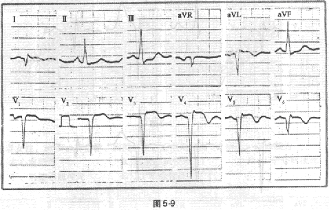 单项选择题患者女性,63岁, 突发持续性胸痛入院。心电图如图5-9所示,应诊断是