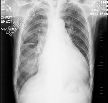 - 单项选择题患者女性,70岁, 胸闷、气逼数年,无明显发热、胸痛, 如图最可能的诊断是 ( )