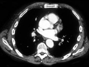 - 单项选择题女性,62岁。突发性胸痛伴咯血、呼吸困难半天。体检: 肥胖,呼吸急促, 左肺呼吸音低。胸部CT如图,应考虑 ( )