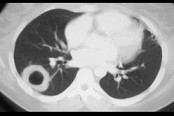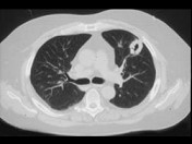 - 男,35岁,畏寒高热咳脓痰3个月。胸片示