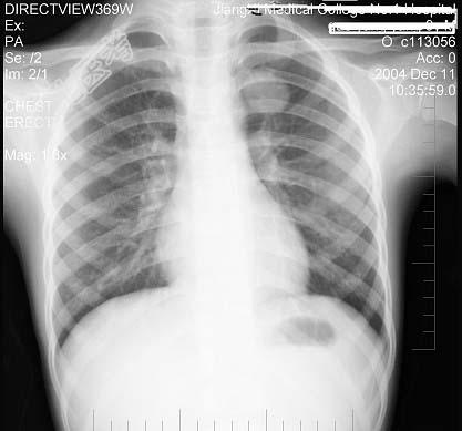 - X线胸片示有空洞形成,同侧或对侧肺野有斑