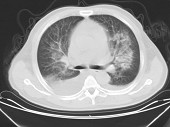 - 男性,70岁, 咳嗽2周,咯血丝痰1周,