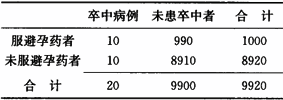 - 单项选择题为确定一种新发明的避孕药是否增加了卒中的危险,进行了一项队列研究。选取生育年龄的一个随机样本, 发现9920名妇女适于作为研究对象,其中1000名定期使用该种避孕药, 其他人不用。对全部样本人群随访10年,结果如下: