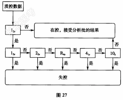 - [材料题] 某检测项目采用图27所示的质控规则判定室内质控。