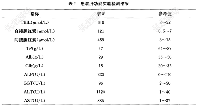 - 多项选择题3.[提示]该患者的实验室检测结果如下:血常规: 正常;网织红细胞计数: 正常;尿常规: 胆红素:(+++); 尿胆原:(+)。患者肝功能和免疫学检验结果见表1和表2。