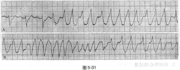 单项选择题患者男性,63岁, 冠心病史,近来发生晕厥2次。住院期间发生阿-斯综合征, 并记录到如下心电图(图5-31),可诊断为