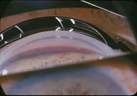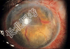 - [材料题] 患者,女性,70岁,高血压史5年,3个月前右眼突然视力下降,外院诊断为右眼缺血型视网膜中央静脉阻塞,予药物治疗。2天前,患者出现右眼胀痛。检查右眼视力数指,角膜上皮水肿,前房不浅,虹膜红变,晶状体尚透明,眼压40mmHg。