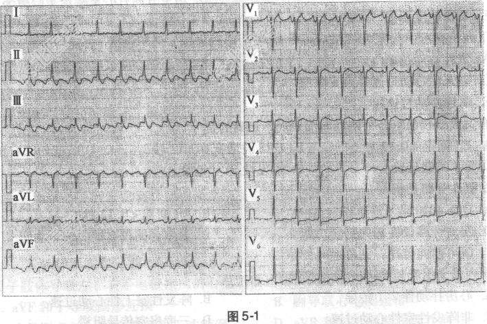 - 单项选择题患者男性,59岁, 因心悸持续1小时就诊。心电图如图5-1所示,应诊断是