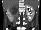 - 单项选择题一女性患者,一月前出现尿频、尿急等症状为引起注意, 现有高热,阅图后最可能的诊断为 ( )