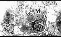 - 单项选择题图-1为HE染色,图-2为PAS染色, 图-3免疫荧光镜下可见IgM团块状沉积于病灶区,图-4电镜下可见上皮细胞足突广泛融合, 系膜增生(M)。阅读这些病理图片,诊断其病理类型是 ( )