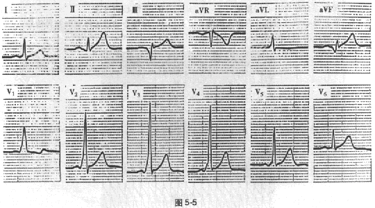 - 单项选择题患者女性,26岁, 有心悸、胸闷病史。心电图如图5-5所示,应诊断为