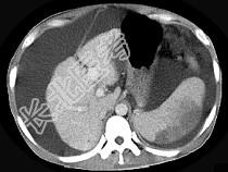 - 单项选择题患者男,29岁, 乙肝病史10余年,腹胀, 有移动性浊音,影像检查如图, 最全面的诊断是 ( )