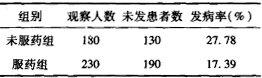 E、服药组的发病率低于未服药组发病率,可以认为该药有效
