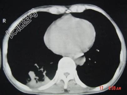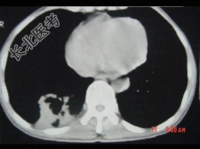 - 单项选择题男,40岁, 胸背疼痛一周,消瘦一月, CT检查如图,最可能的诊断为 ( )