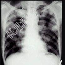 - 单项选择题男,45岁, HBV阳性十年,胸痛一月伴咳嗽, 咯血一天,胸片如图, 选择最可能的诊断 ( )