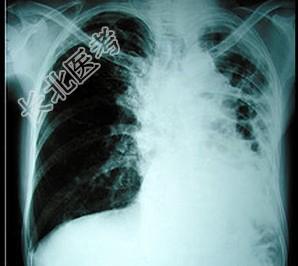 - 单项选择题患者因咳嗽、胸痛、乏力入院,体检时发现左肺呼吸音减弱, X线胸片如图所示,诊断为 ( )