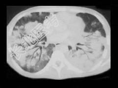 - 单项选择题男,27岁, 干咳,呼吸困难半月余, 有艾滋病病史半年余,请结合CT检查, 选出最可能的诊断 ( )