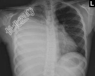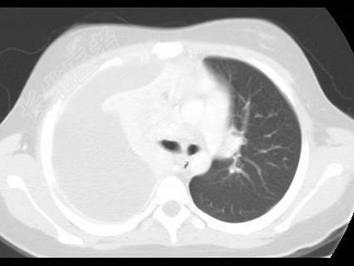 - 右上叶支气管开口肺癌致右全肺不张。隆突下