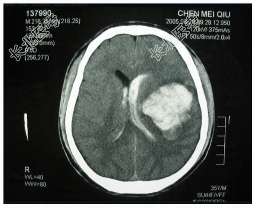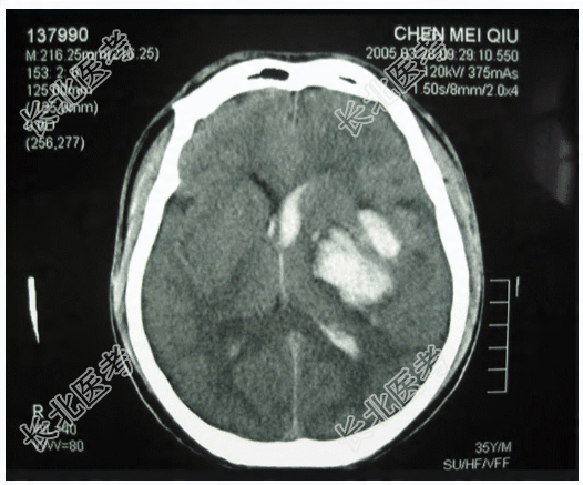 - [材料题] 患者女性,50岁。3小时前被家人发现倒在地上,呼之不应,地面可见呕吐物。急送医院,体检:浅昏迷,BP:170/100mmHg。右侧瞳孔3.0mm,对光反射灵敏,左侧瞳孔2.5mm,对光反射迟钝,刺痛右侧肢体无活动,左侧肢体有回缩。既往无高血压病史。