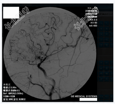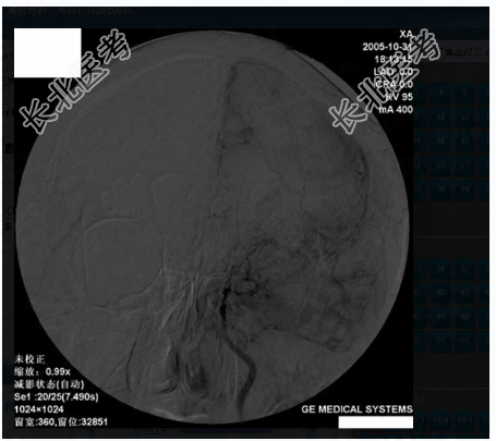 - 多项选择题3.提示:患者急诊行开颅探查、血肿清除、去骨瓣减压术, 术后一周后行全脑血管DSA,见下图。从上可能得出的诊断有