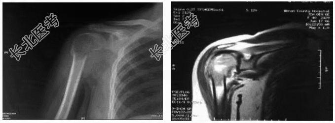 - 多项选择题2.肩关节X线片所见。根据肩关节X线片,你认为该病人诊断应考虑哪些